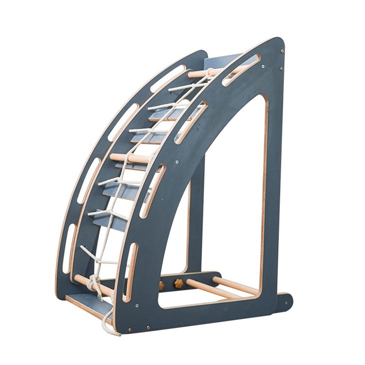 5. Εξοικονόμηση χώρου: Σε σύγκριση με τον συμβατικό αθλητικό εξοπλισμό, ο όγκος της γκρι καμπύλης ξύλινης σκάλας αναρρίχησης είναι μικρός και έχει μικρό χώρο κατάληψης χώρου, ο οποίος είναι κατάλληλος για μέρη όπως σπίτι, σχολεία, πάρκα.